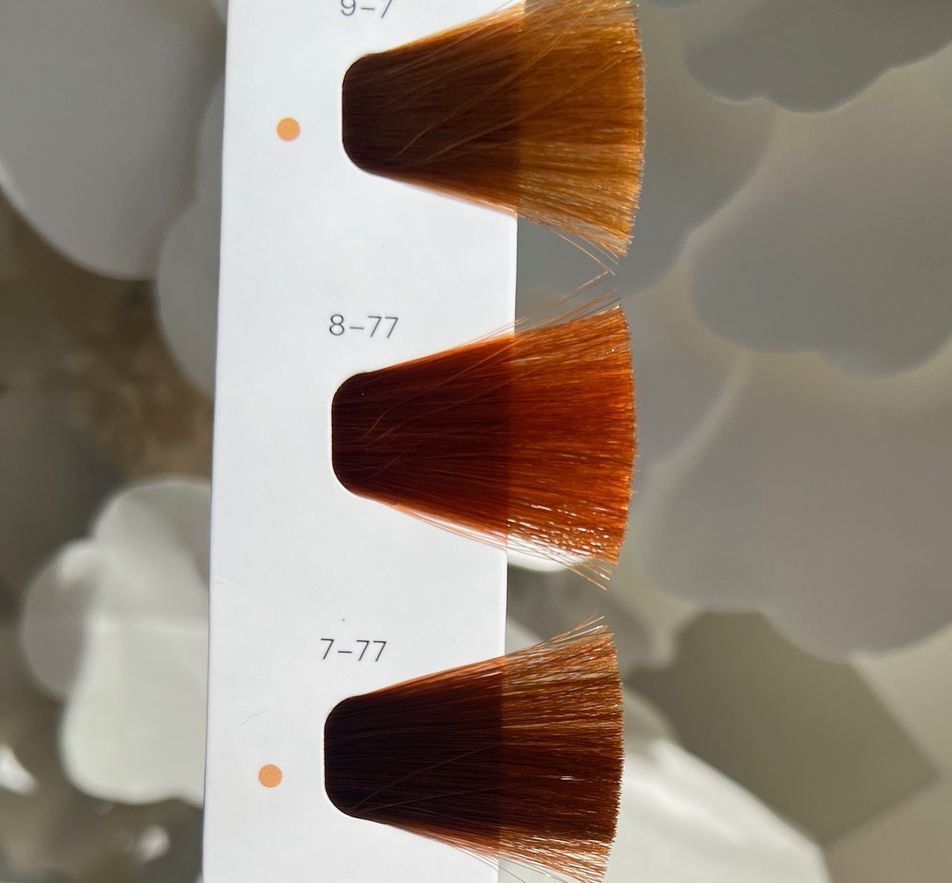 Now let's get a little technical! Cowboy copper can be achieved on any shade of hair, whether you are blonde, brunette or a natural red. To achieve the cowboy copper color shown above, we started with a natural level 9 blonde hair swatch. We used one of our favorite Schwarzkopf Cowboy Copper Formulas: Igora Royal 8-77 (20g) + 7-57 (10g) + 7-65 (10g) with 20 volume developer for 35min. If you're interested to achieve your own Cowboy Copper look, come visit us in our secluded and convenient location right off of Legacy Drive in Frisco!